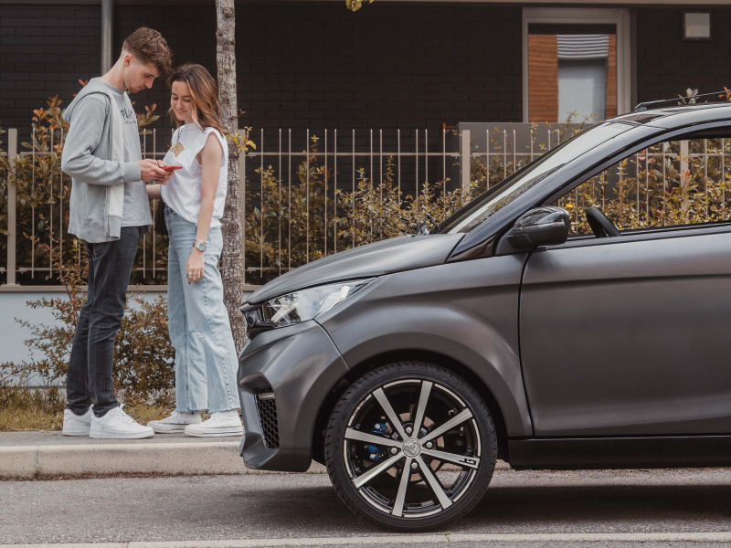 Racinginspirerad 100% eldriven Aixam mopedbil.